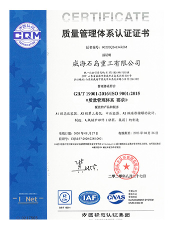 The company establishes and improves a quality assurance system for pressure vessel design and manufacturing in accordance with relevant national laws and regulations. At the same time, it relies on the international ISO9001 standard to improve the quality assurance system, ensuring reliable product quality.